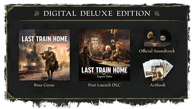 Get the full Legionnaires experience with the "Last Train Home Digital Deluxe Edition" including the major DLC "Last Train Home - Legion Tales", the digital Artbook and the atmospherical Soundtrack.